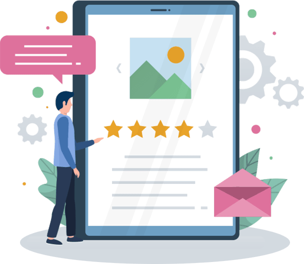 - We provide you with software that automatically connects with your business billing system and sends out emails to your customers to collect reviews.