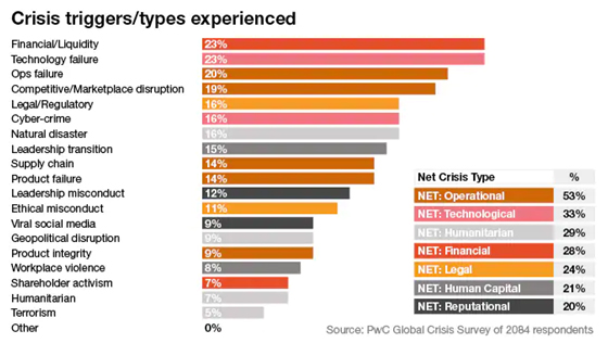 Here is a chart that showcases some of the most common types of crises businesses can experience.