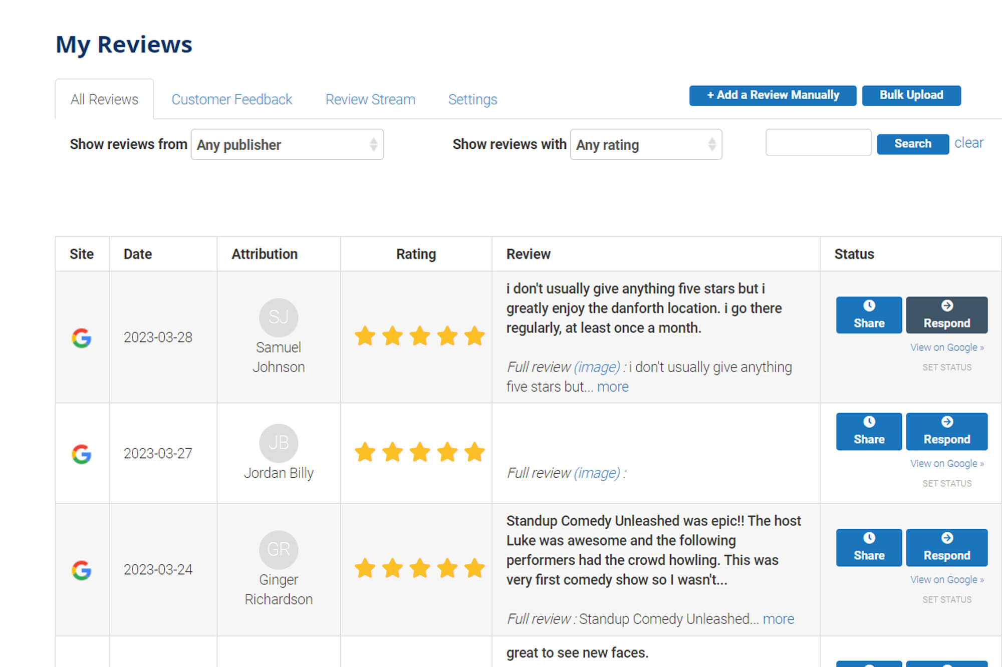 Gather reviews from sites like Google, Yelp, TripAdvisor, BBB and many more.