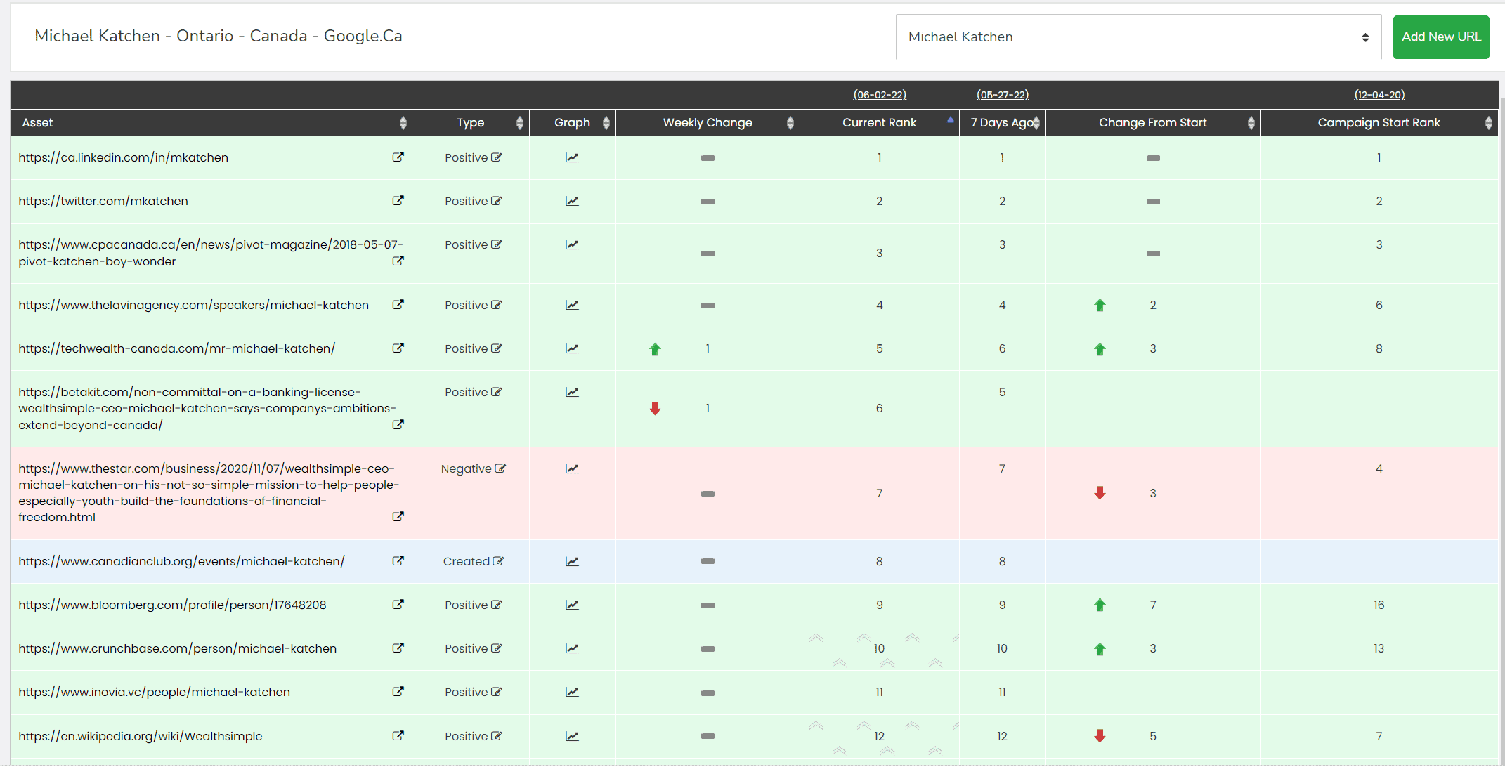The RepuSure® dashboard provides a clear, graphical display of how your online reputation is changing on a monthly basis. RepuSure®’s sentiment graph displays key data points, such as number of positive, negative and created links within either your Top 10 or Top 20 Google search results. Through these data points, RepuSure® provides an graphical analysis of your online sentiment or how you holistically appear to Google users.